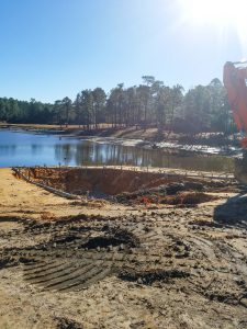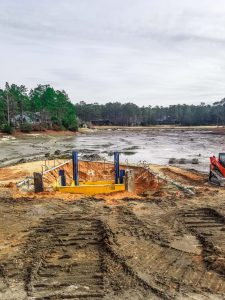 The slide rail system is a shoring solution that can be paired with different types of accessories. For this project, the slide rail system was composed of two bays with a sheeting guided frame located at the upper end of the system, while a rolling strut was placed in the center of the bays above and between the existing intake basin and the new structure. The slide rail system’s initial setup played a key role in the installation process, as the contractor needed to align the protective system perfectly against the existing corrugated pipe so that the sheeting guided frame would be placed at the upper end of the protective system above the existing line which ran through the dam. The sheeting guided frame added paramount protection and the necessary clearance while the rolling strut provided the adequate reach needed to access the two structures without compromising the integrity of the entire protective system. The slide rail system proved to be the best solution for the project thanks to its modular capabilities. The contractor was extremely impressed with the effectiveness and the ease of use of the slide rail system under poor soil conditions. Once the project has been completed it will extend the life of the irrigation infrastructure, provide the proper amount of water needed to upkeep the golf course grounds, and allow the golf course to be fully operational.